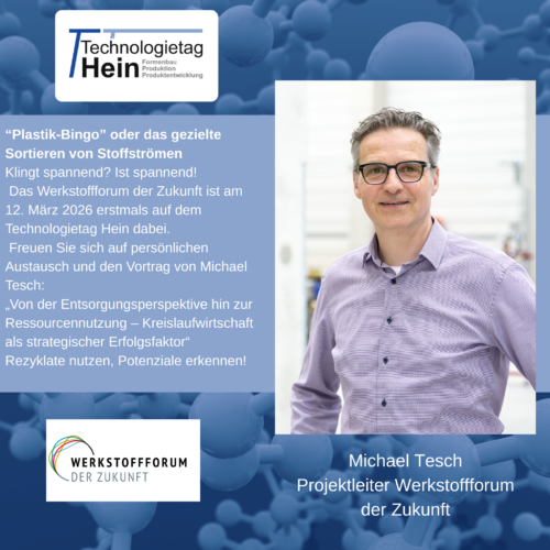 „Das Werkstoffforum der Zukunft zeigt Unternehmen konkrete Möglichkeiten auf, die Transformation der Kunststoffindustrie anzugehen. Mithilfe einer starken regionalen Verankerung wird die Wettbewerbsfähigkeit der Branche in herausfordernden Zeiten gestärkt. Dabei setzt das Werkstoffforum an einer entscheidenden Stelle an: der Entwicklung nachhaltiger und zirkulärer Geschäftsmodelle.“